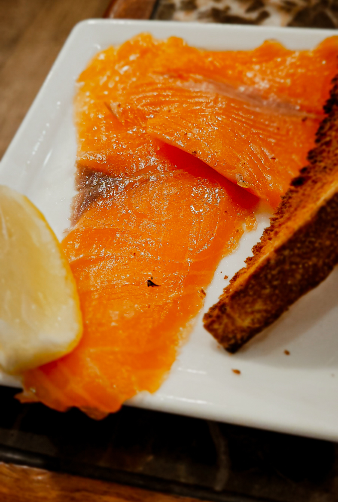 A very nice waitress came to see me and asked me whether I was ready for the next plate. What a sweetie, knowing exactly what to say to make me happy. Out came a very timid, yet heartfelt, “yes please!” Back she came with “la suite.” A parboiled egg that had had its shell removed, on a bed of some finely cut leek and carrots in a cream sauce. Cutting into the egg, the yolk was perfectly runny. A true taste sensation! The generous serving of smoked salmon was top-notch. Luckily, there was just enough bread to mop up the sauce and remaining yolk.
