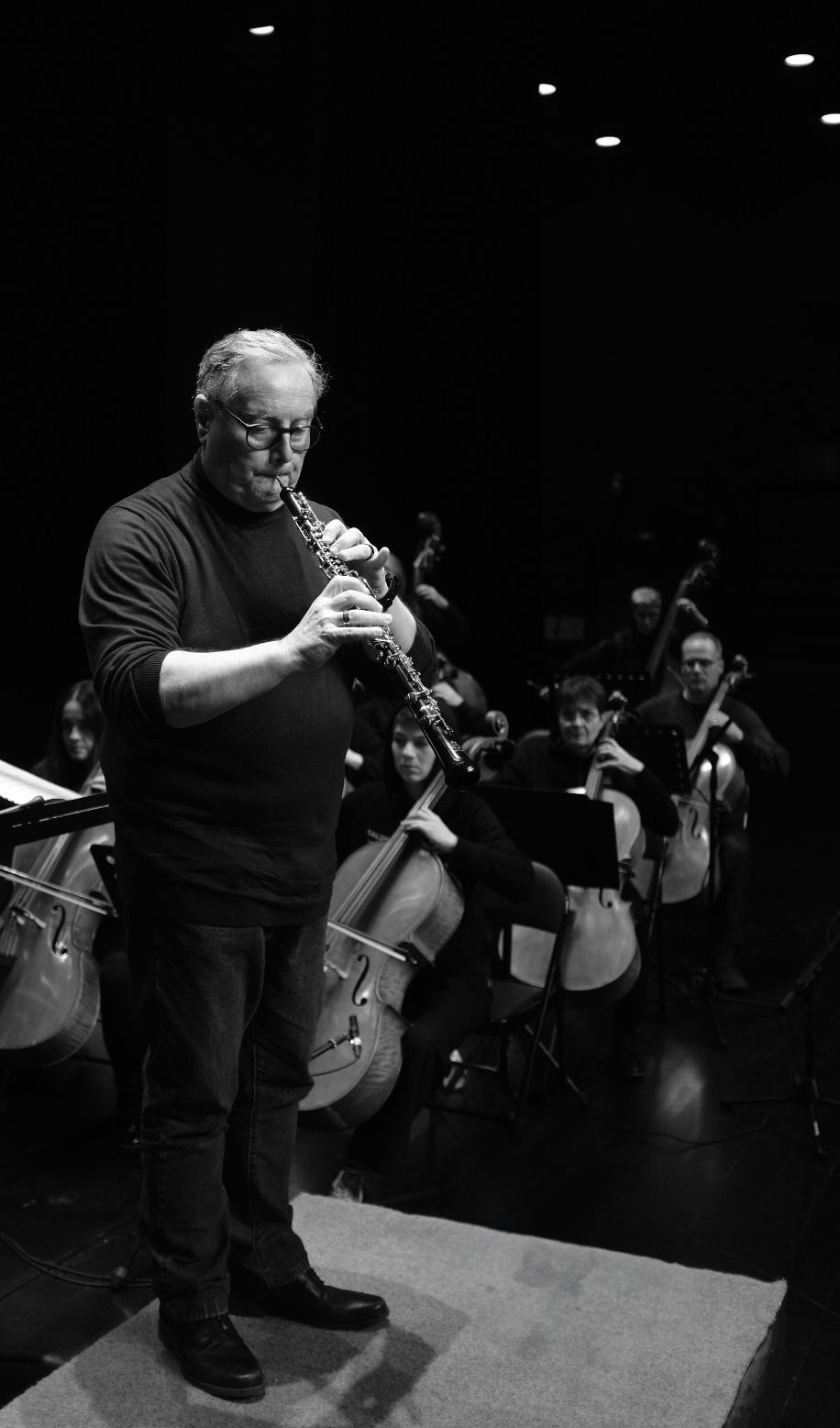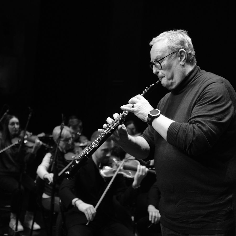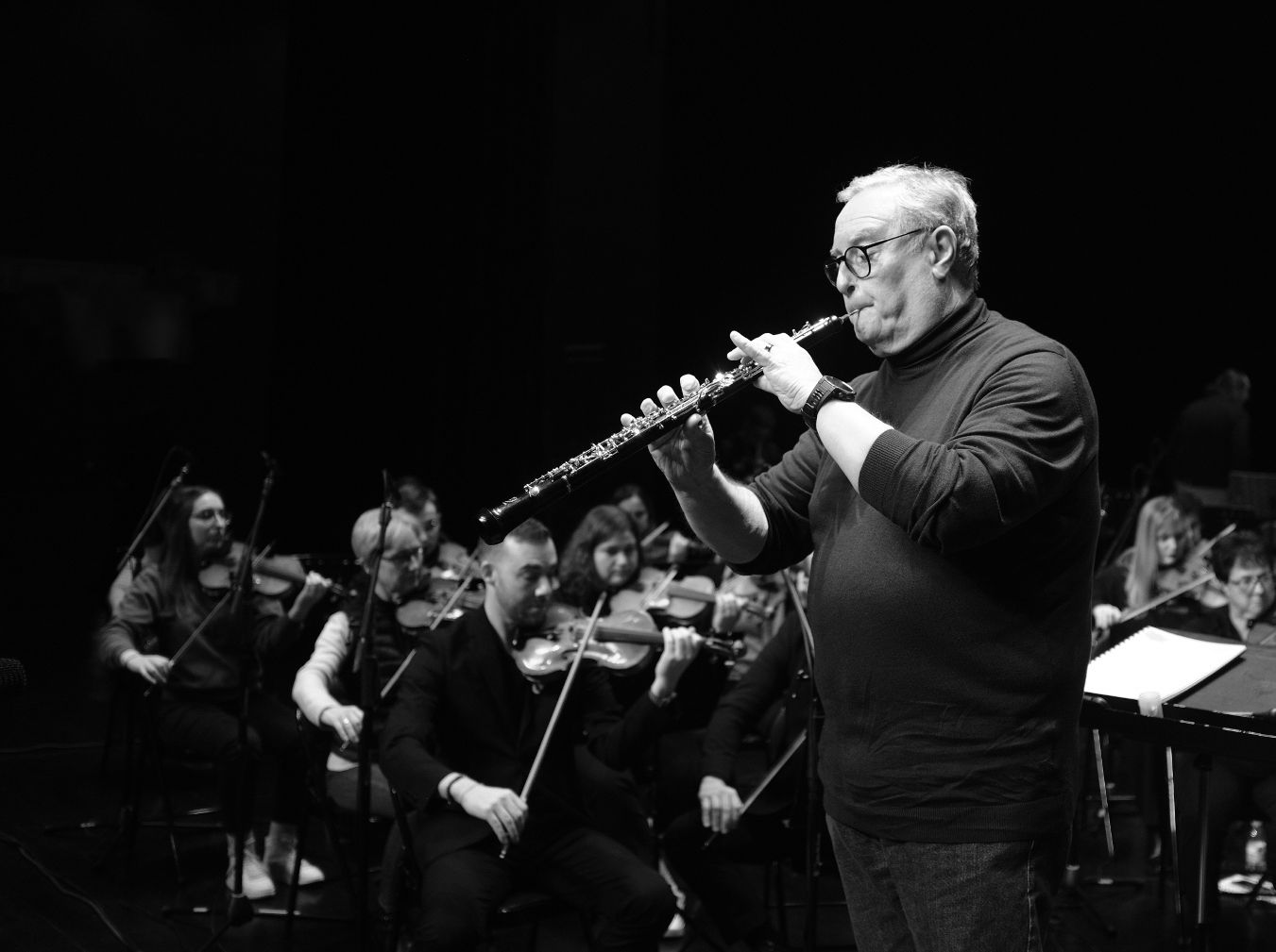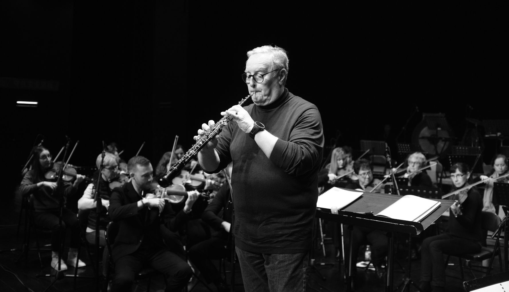 Back at the hotel, I got showered and changed into my concert suit and looked rather dashing, if I don’t say so myself. After the success of my photoshoot post-lunch, I was still on a high! Off we went to the concert venue for the evening’s performance. It was all very impressive, as was the welcome by the theatre staff. The actual stage was huge, and for the afternoon rehearsal, everything was ready for us. We just had to walk on stage and play. I could definitely get used to this. I even managed to get a few photos, including a short series of the boss playing Gabriel’s Oboe from the soundtrack of the film “Mission.” Not the impossible one, I hasten to add.