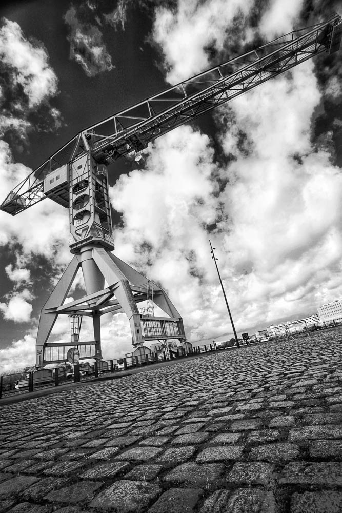 I love this bit of Nantes’ industrial heritage and happy that they conserved it.  This huge grey crane looms up before you and is on the very end of the Île de Nantes. I’ve photograped this crane many times and I might publish some other photos from the archives later on.