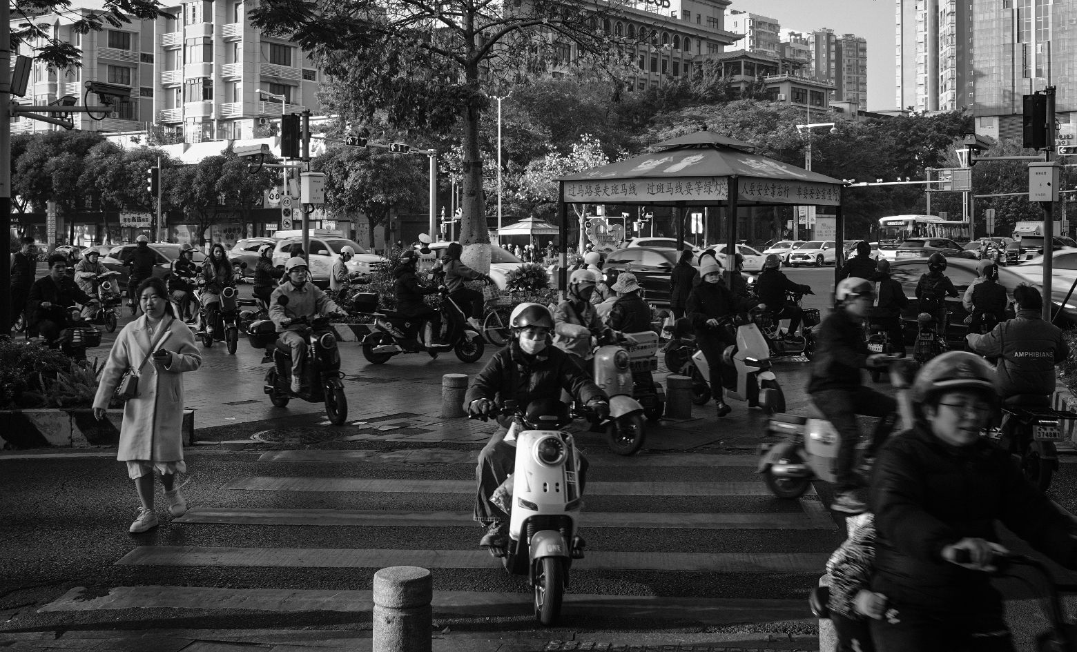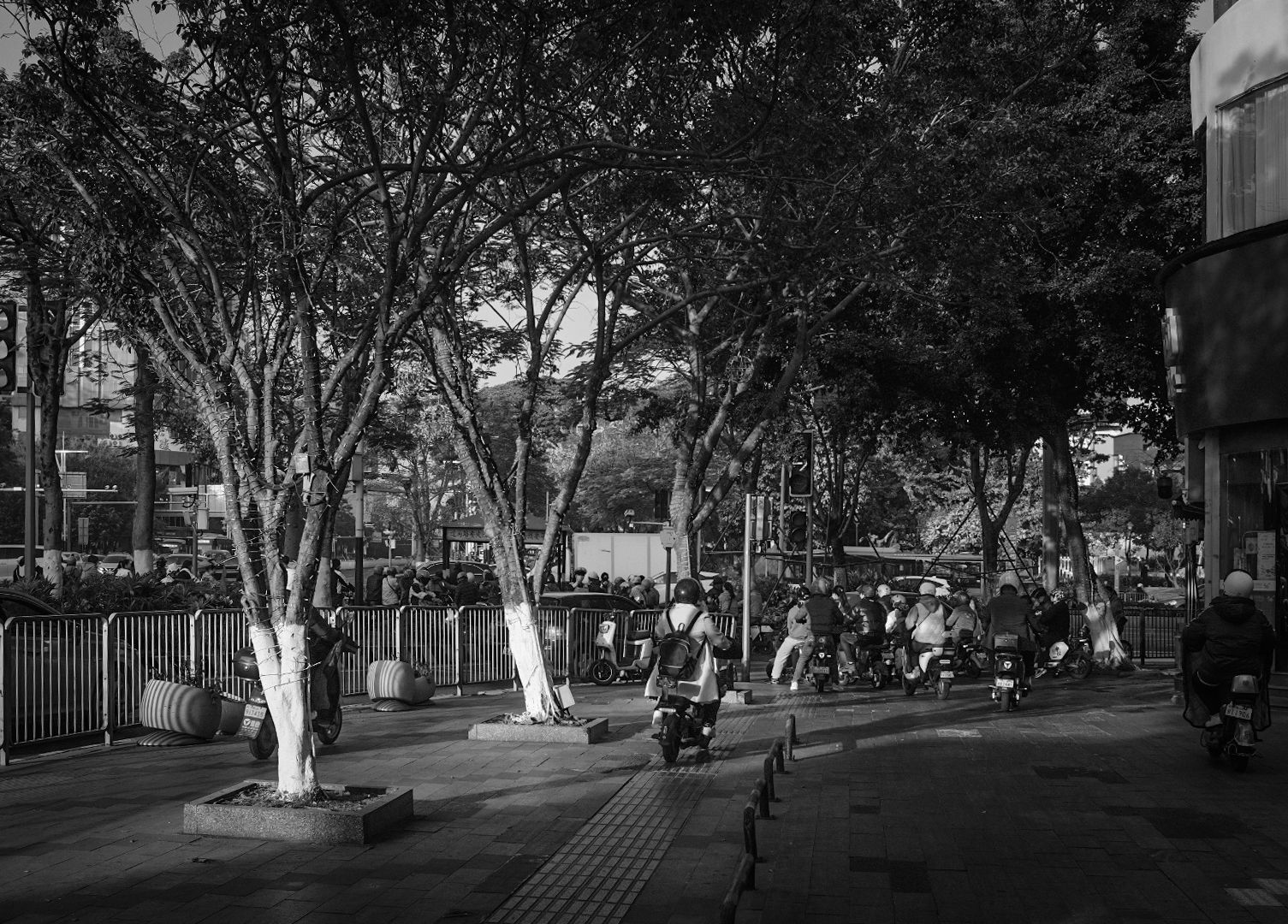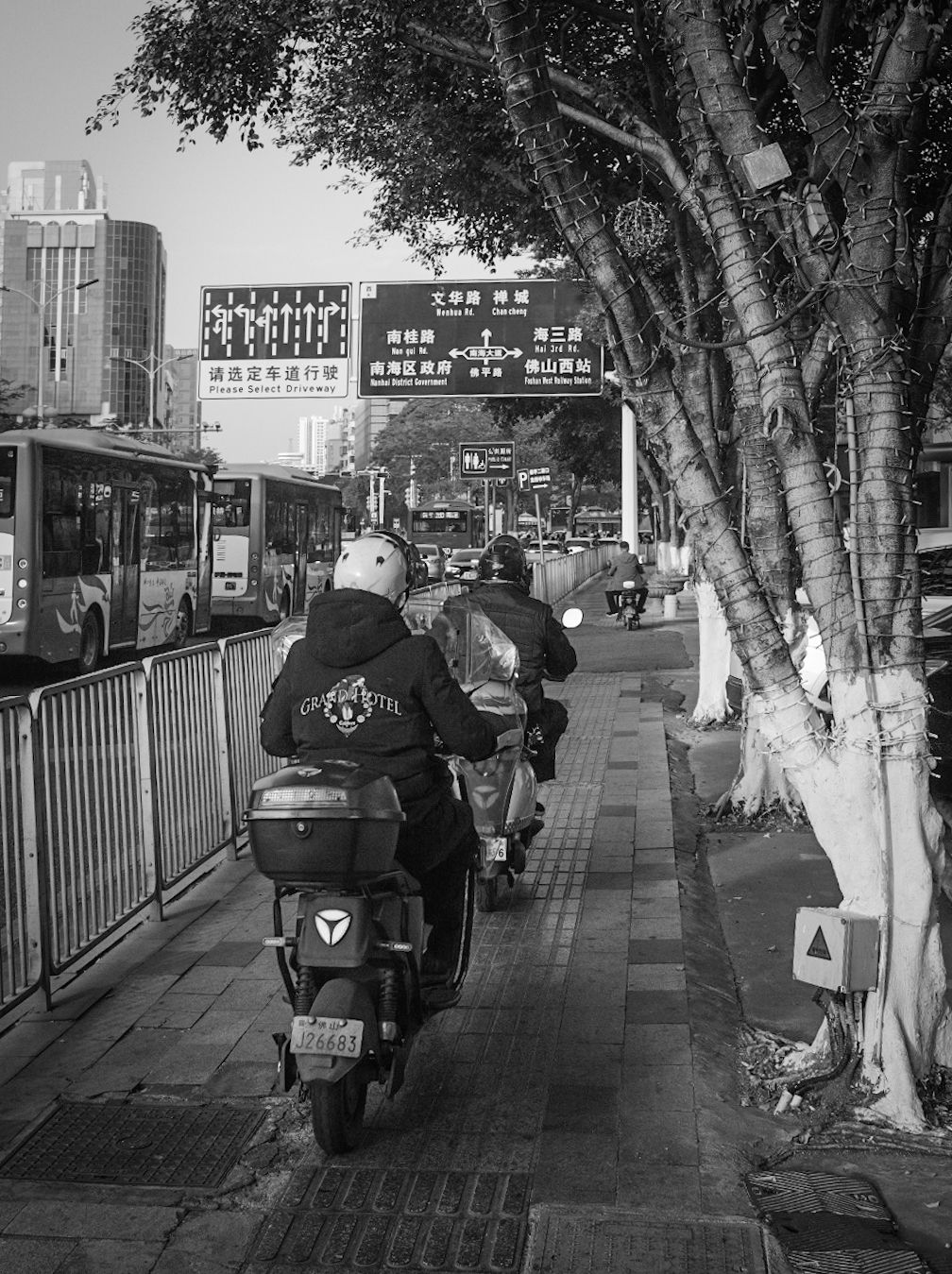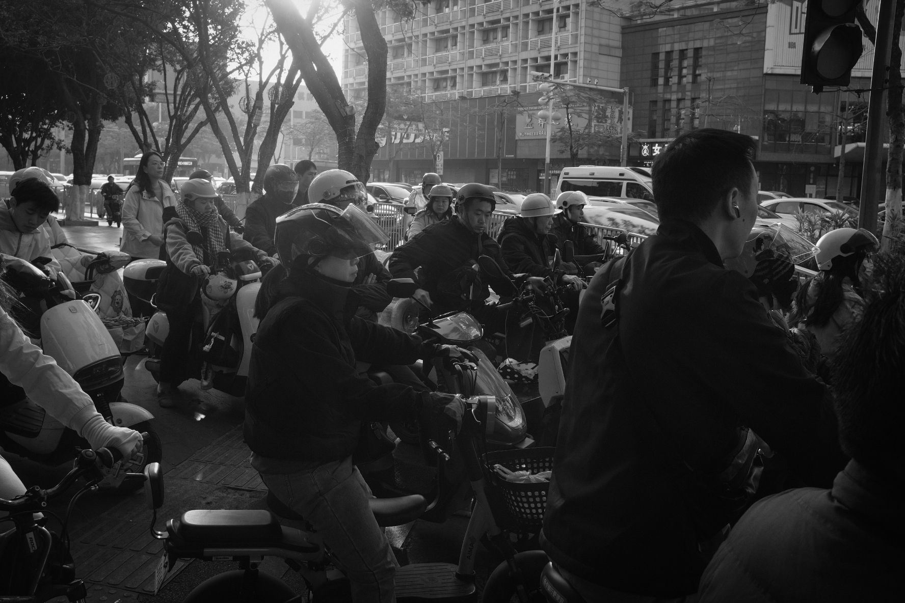 If you know China at all you will know that they have a reputation for pollution. Oooooh. Pollution bad! Pollution very nasty. Not good. However, it does give a wonderful diffused light for photography, and one of the way theys fight pollution is not only by a huge amount of electric scooters and electric cars, but also by spraying water vapour in the streets hoping to capture some of those not very nice particles. You can see this in a couple of my street photos above It is said that all their electricity comes from coal powered power stations, but I saw plenty of solar panels as well as wind turbines. I think they’re really trying, and should be encouraged.