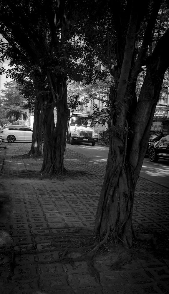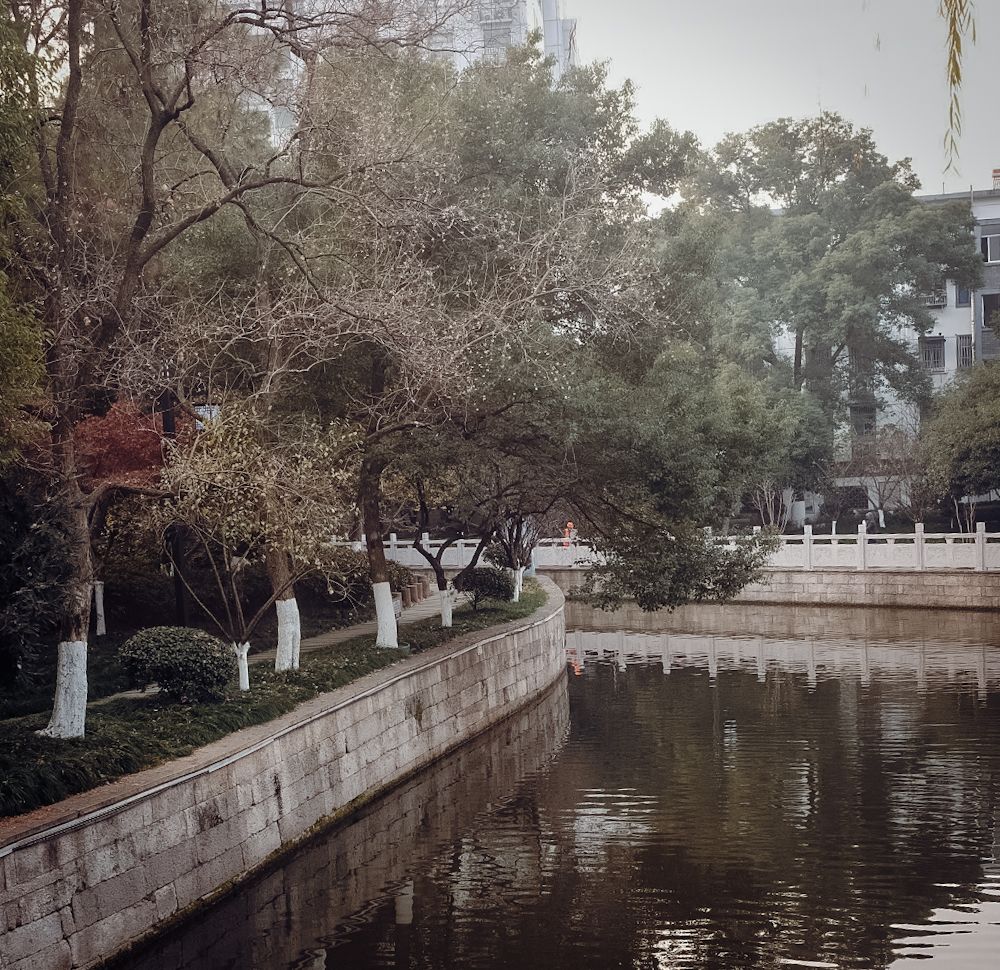 Now, let’s move quickly on from toilet humour (as universal as it may be) to the park next to our hotel. We were on the 22nd floor and had a marvellous view of the city centre. I could even see that night’s venue from our room and decided to explore the area, camera in hand. The winter sunlight was soft—bright but not blinding—perfect for photography. I wanted to capture the impression of Shao Xing, not just through candid portraits of people but through its landscapes and atmosphere. My aim was to convey the city’s essence, much like an impressionist painting, but with a camera instead of a brush.