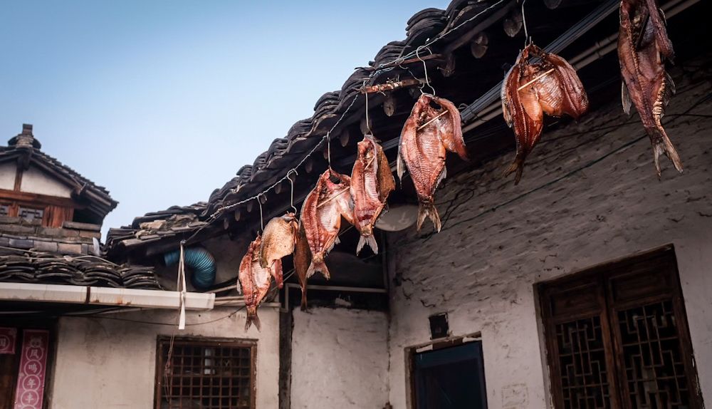 And it was stunning, as you’ll see later in the photos—filled with all the quintessential imagery of China: round entrances leading to inner courtyards, red lanterns preparing for the Chinese New Year, fish drying under the rafters, boats drifting along the canals, humpback bridges, mopeds zipping past, and an old lady eating her rice for breakfast. Even Confucius was there—his wisdom guiding us through the streets.